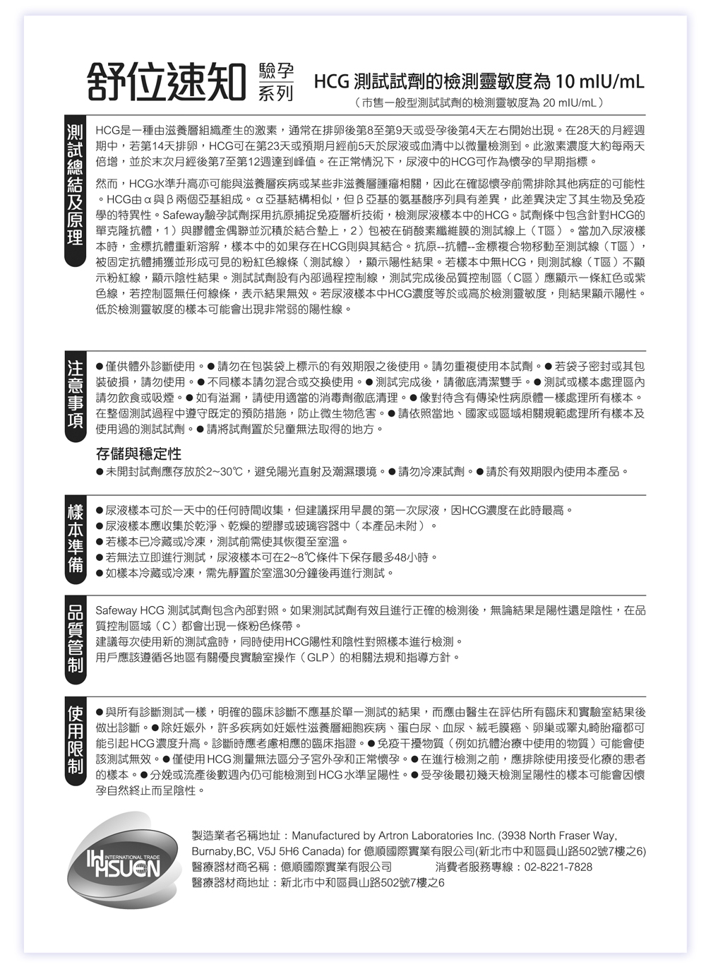 Manufactured by Artron Laboratories Inc.(3938 North Fraser Way, Burnaby, BC. V5J 5HL Canada )